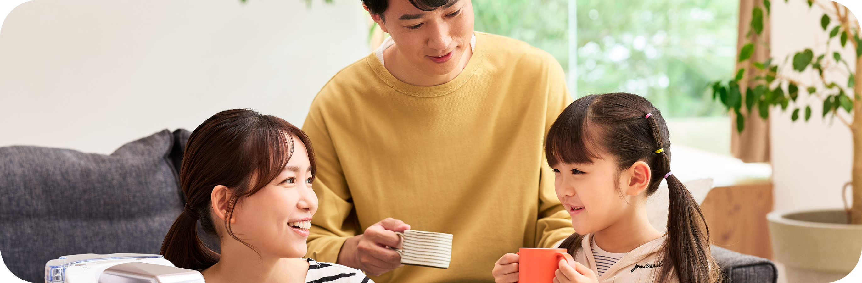 とっておきの日本茶も1分で出来上がり。茶葉を蒸らしながら淹れてくれるから、味に厳しい2人からも大好評。お夕飯の準備に戻ろうっと。